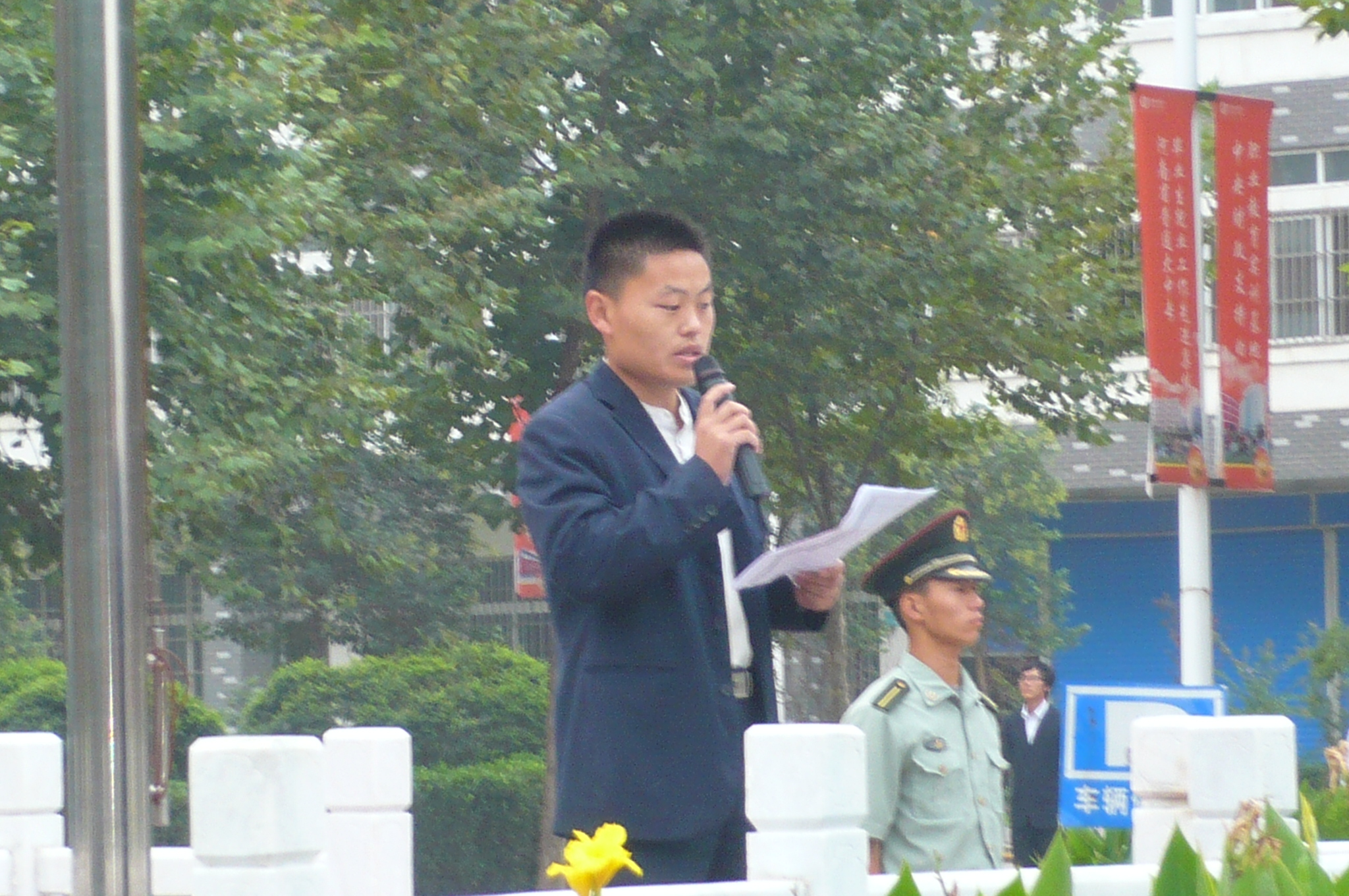 晨风和煦,国旗飞扬。鸟语花香,歌声嘹亮。 2010年9月20日星期一早上7:20,郑州交通职业公司举行了2010——2011学年年度第三周升旗仪式。本次升旗仪式由交通工程系2010级全体新生参加。在员工干部的精心组织下,现场秩序一片井然,在鲜红的旗帜下,嘹亮的国歌声后,交通工程系团总支书记徐强老师带领大家宣读校训,员工代表09级公路监理一班赵英同学做了名为《用拼搏为青春喝彩》的国旗下演讲。继而交通工程系王明华副主任发表讲话,在王主任的讲话中不难听出对10级新生的期待和关怀。