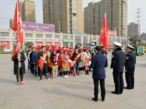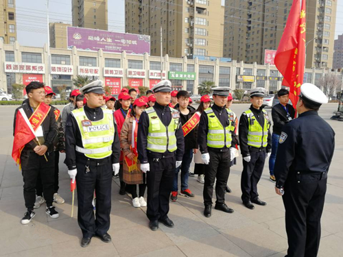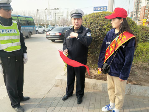 三月雷锋月,发扬无私奉献,钉子精神。yl7703永利集团官网凌云社、yl7703永利集团官网团委与武陟县交警大队联合举办“互助友爱雷锋月,文明交通伴我行”活动。3月21日下午3时,40余位志愿者在龙泉湖东门接受简单的岗前培训后到达执勤岗位。